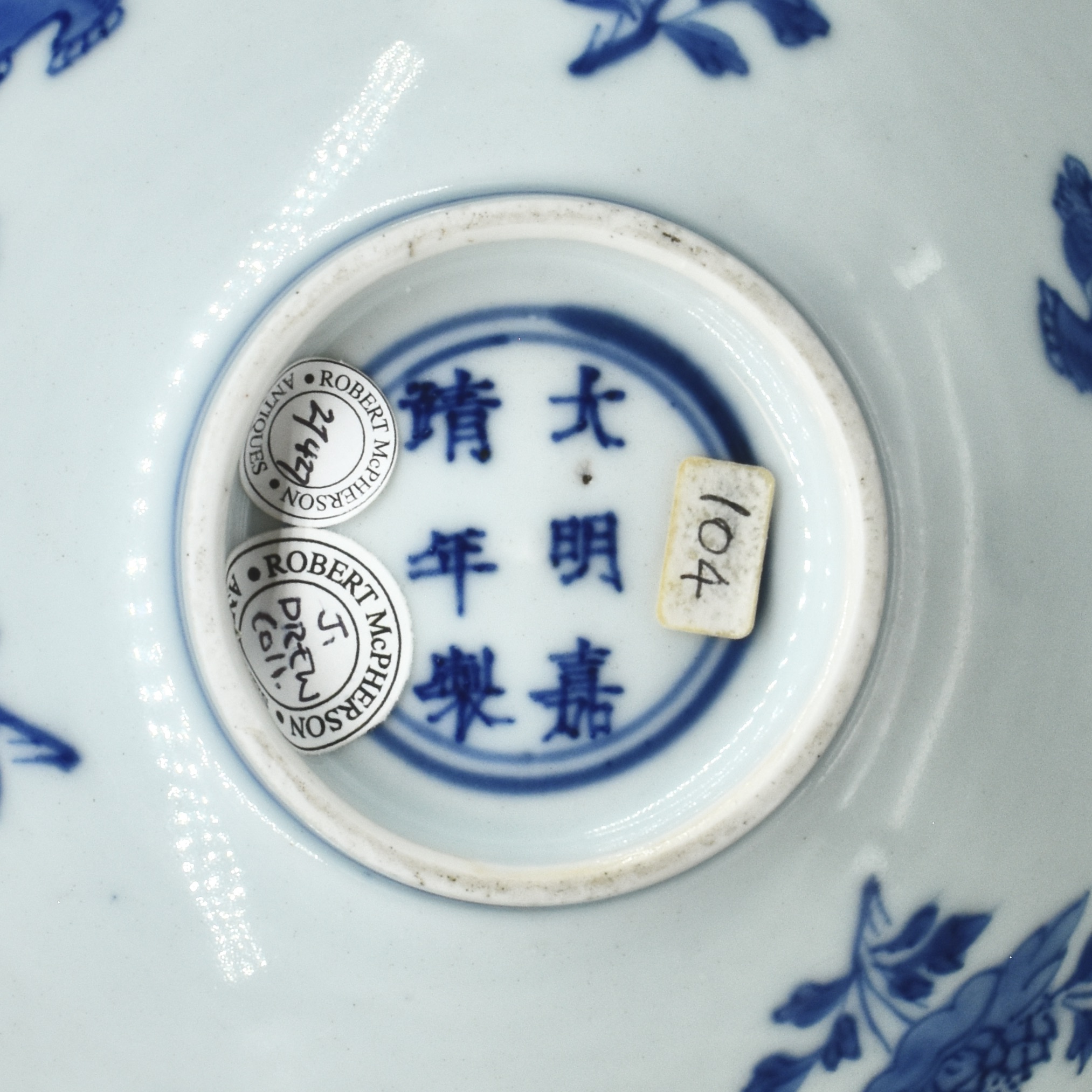 - For a Transitional blue and white porcelain bowl of this design also with a Jiajing mark see : Seventeenth Century Chinese Blue and White Porcelain From The Private Collection of Eileen Lesouef (Exhibition Catalogue, Ben Janssens Oriental Art, Undated) page 30, plate 29. For a pair of bowls of this size, shape and design, see our Sold Archive 24963.