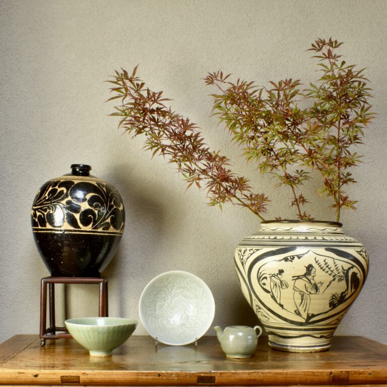 This was a direct result of not being under the control of the court; consequently, the liberty to explore and experiment created an innovative range of designs full of flavour and life unique to Cizhou ware. The utilization of enamelled decorations in tones of vivid reds, yellows, and greens on occasional Cizhou pieces placed it centuries ahead of its time as this was not kosher for early court wares.[1] The ware also displays an amazing dexterity in the sketchily incised patterns which have such a sense of carefree abandon that they appear impressionistic. Today, Cizhou ware is prized for its natural appearance which often reveals the potter’s process from the wheel’s rings, to the inner spur marks, to the unevenly glazed base.